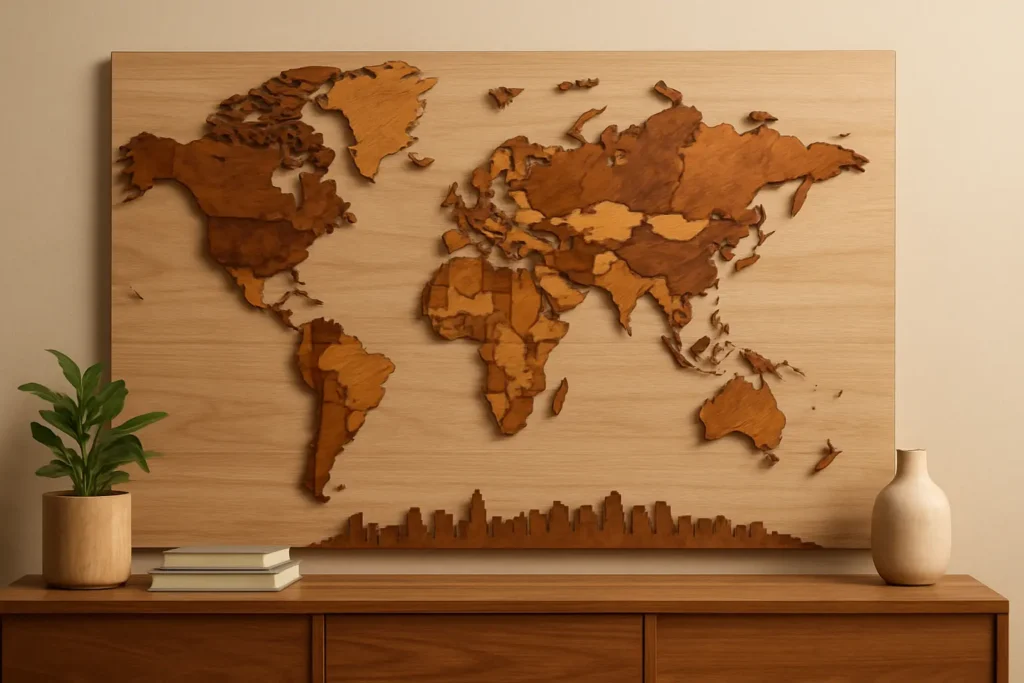 These wooden map charts stimulate the imagination and remind us of our past and future travels. Displayed in your living room or office, a wooden map quickly becomes a conversation starter and a source of daily inspiration. For travel enthusiasts, these wall decorations represent much more than just an object—they embody a lifestyle focused on discovery.